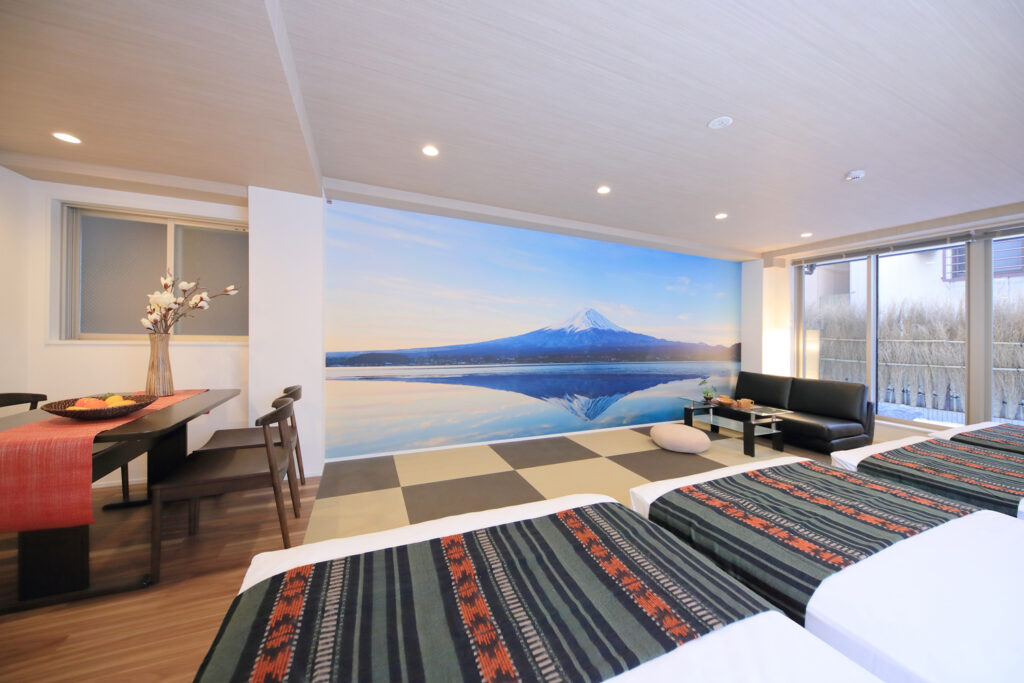 インバウンドを狙い、大人数向け、且つ、壁一面を富士山にすることで、インスタ映えし、集客力が大幅にアップした事例。
